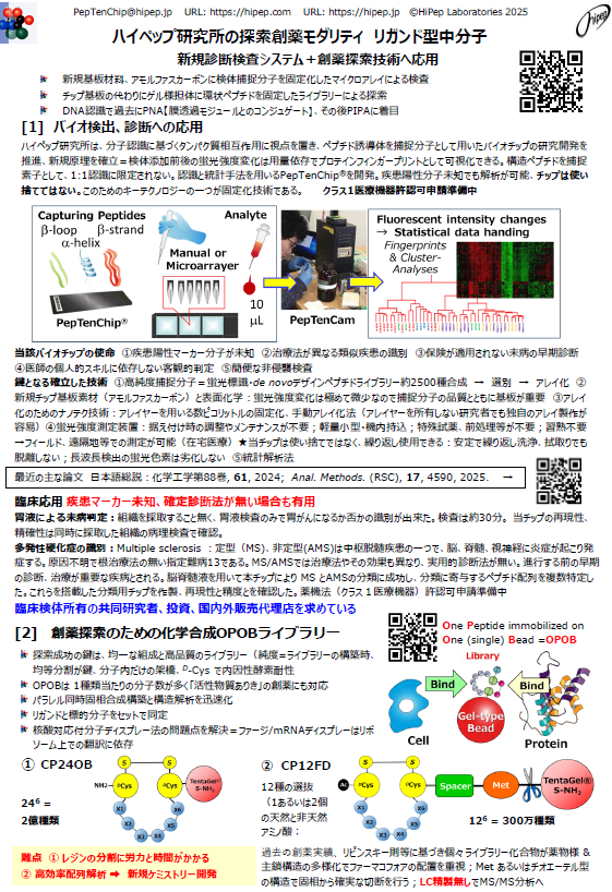 中分子、特殊ペプチド、ペプチド創薬、ペプチド合成受託、タンパク質・ペプチドを中心とした研究開発・調査。実験器具類や試薬、バイオチップの販売。